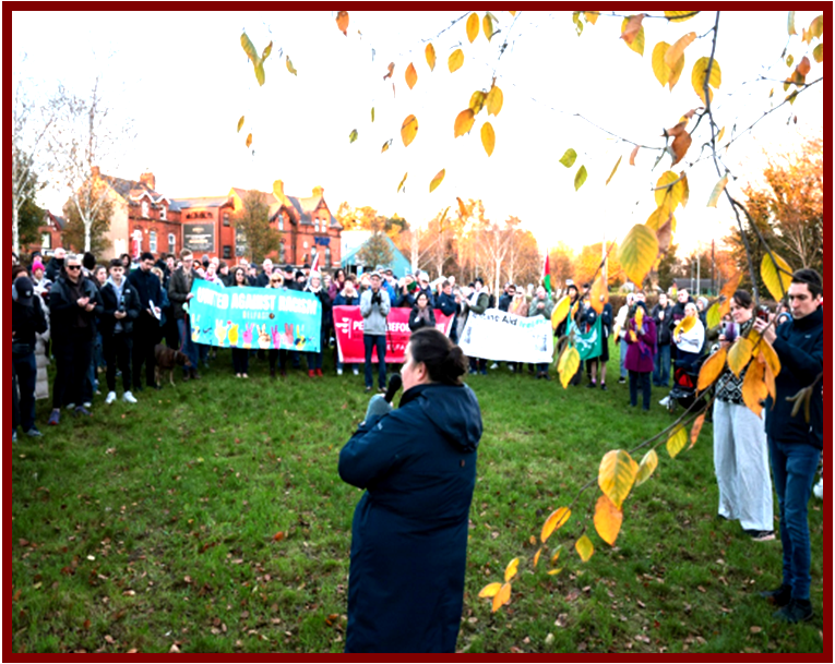 Anaka and Glor na Mona* organised the rally at short notice on Sunday the 16th November, with speakers from Anaka, United Against Racism, and three local politicians all spoke of their shock that something  like this could happen in West Belfast.